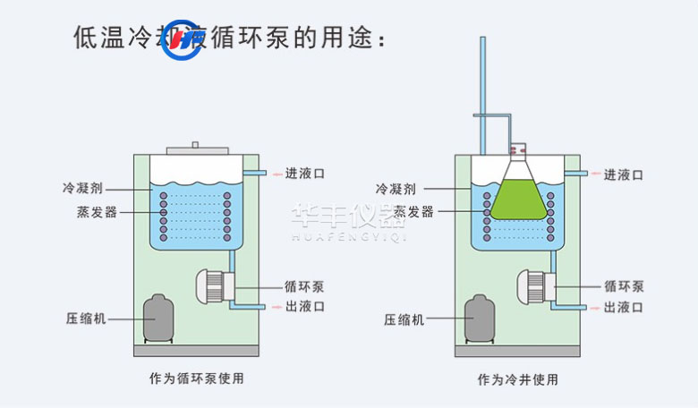 3、循環泵可將槽(機)內冷卻液輸出,冷卻或恒溫機外實驗容器或建立恒溫場。